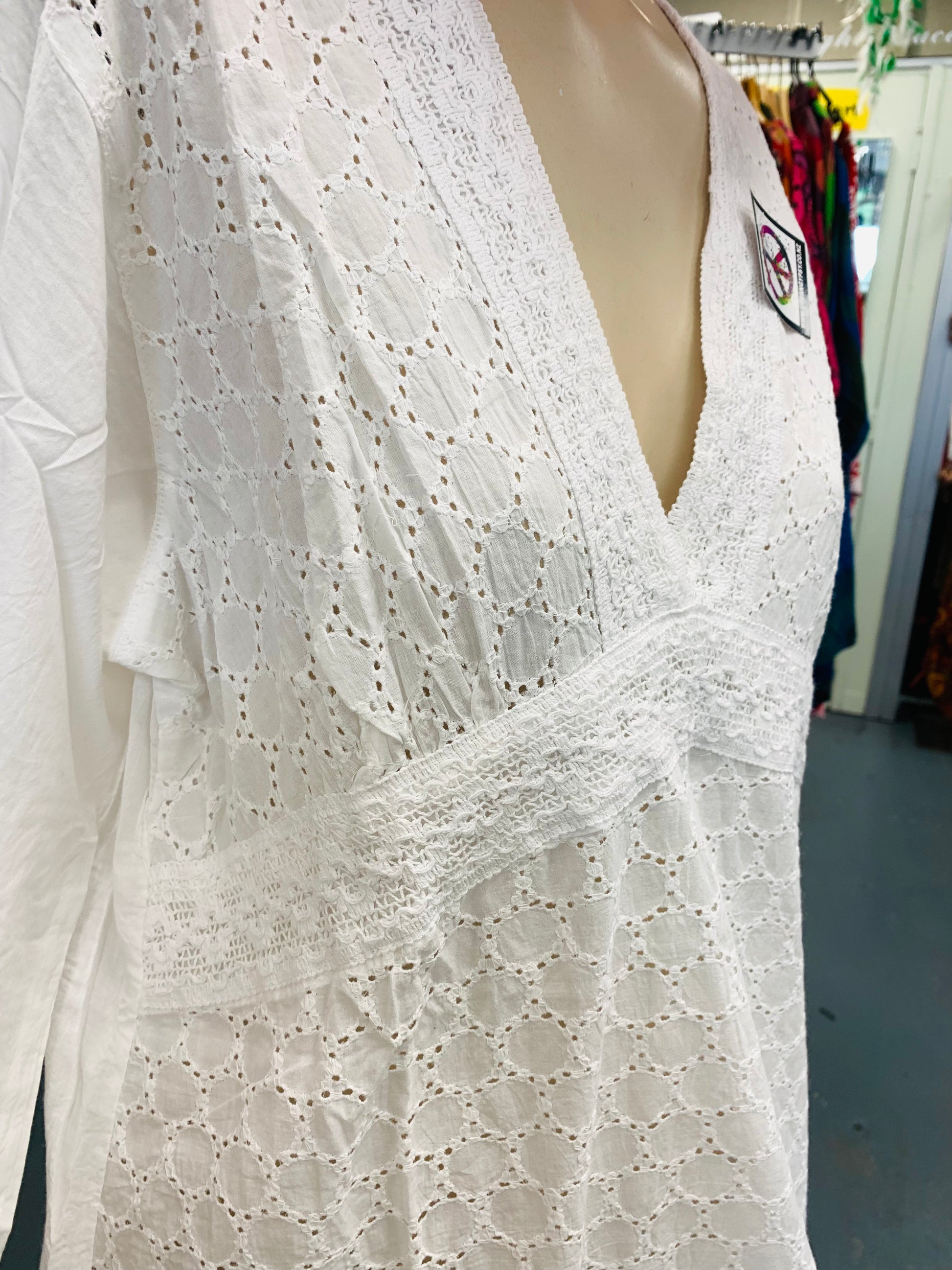 Bohemian style handcrafted cotton white dress #4000