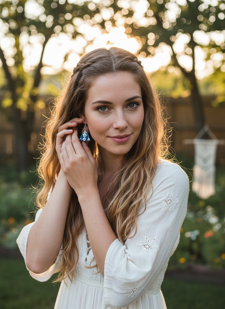 Bohemian style handcrafted Tibetan earrings #220100